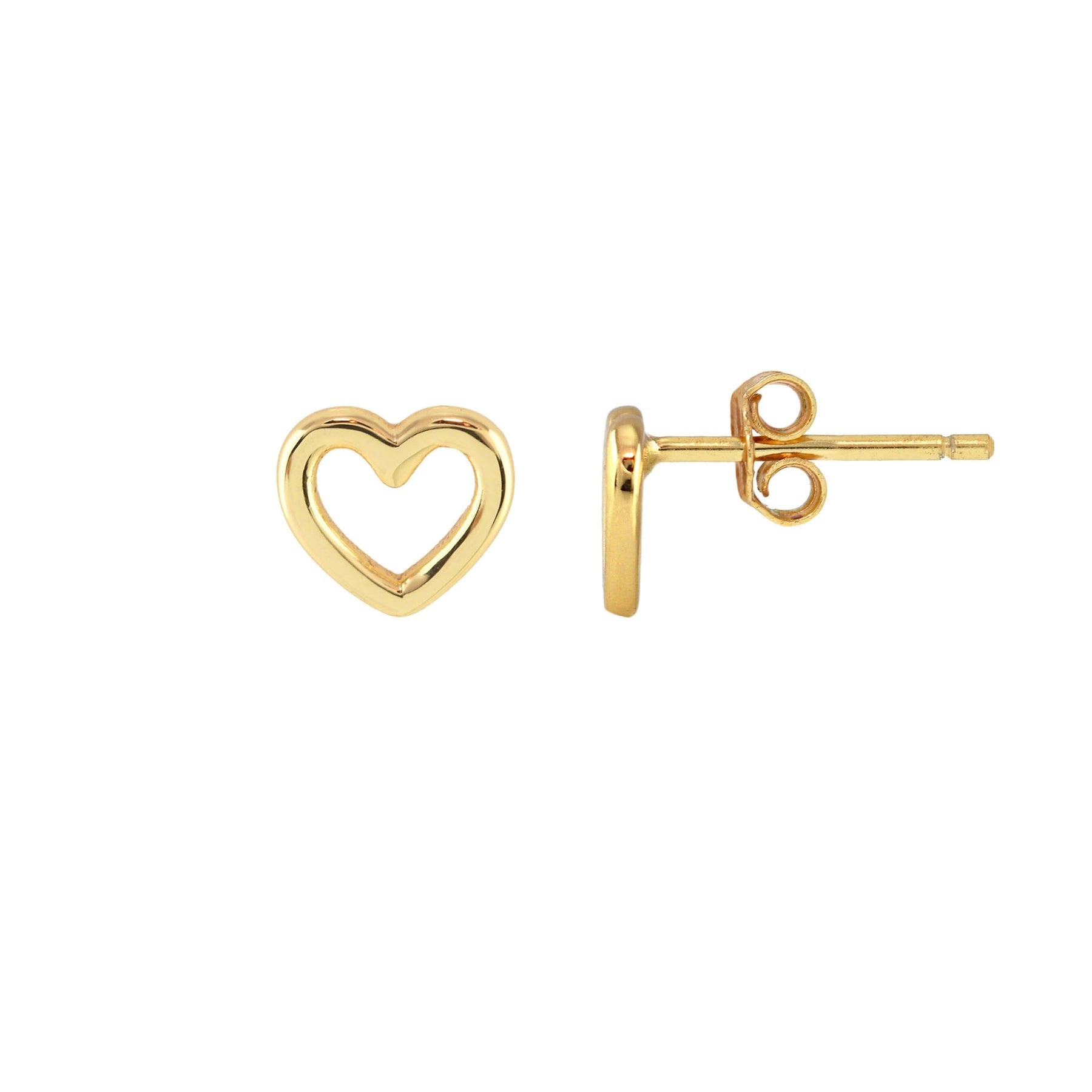Heart outline stud earrings measure 7mm wide. Available in 18K gold vermeil or sterling silver.