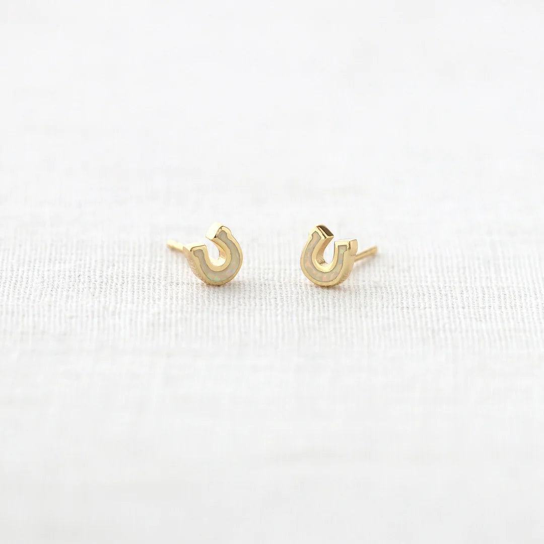 A little luck goes a long way. These tiny horseshoe stud earrings sparkle with opals and are crafted in luxe 18K gold vermeil. At 4mm, they’re the perfect petite size for everyday good vibes—whether you wear them solo or stacked.