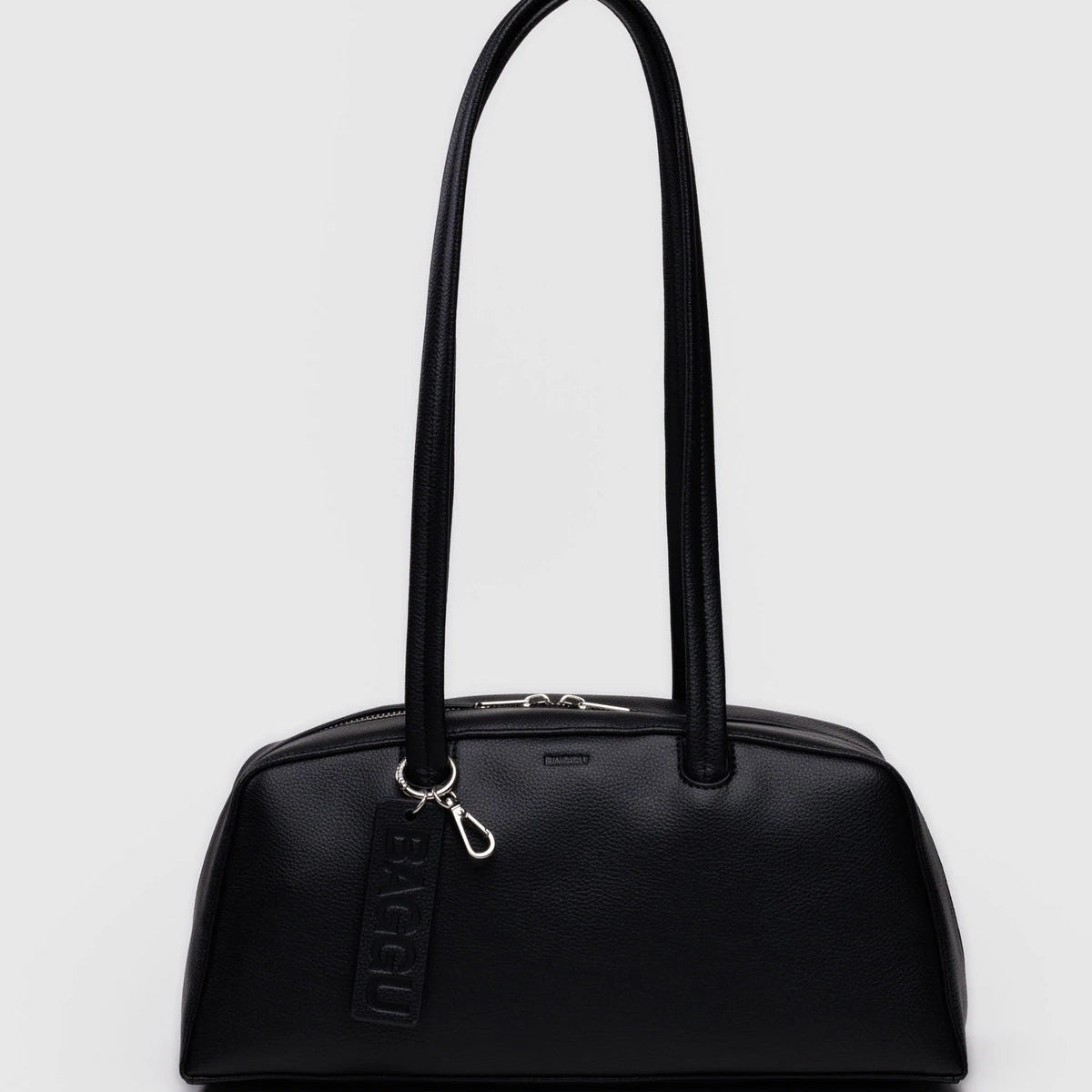 A recycled leather bowler bag designed to be accessorized, with four charm loops and a clip ring. An interior zip pocket keeps things secure and in reach. Extra room fits your book, phone, wallet, keys, and more.