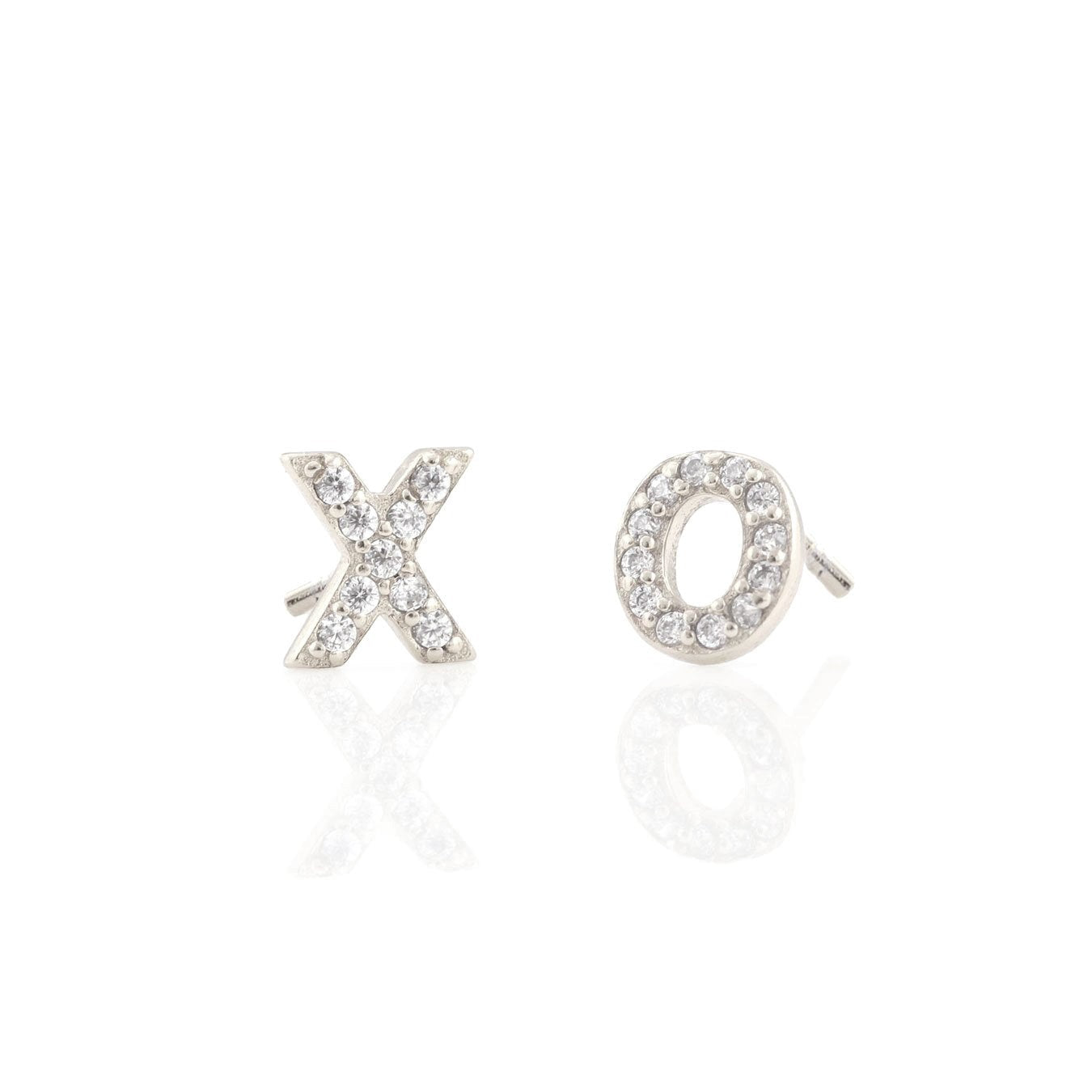 XO pave post earrings set with simulated diamonds.